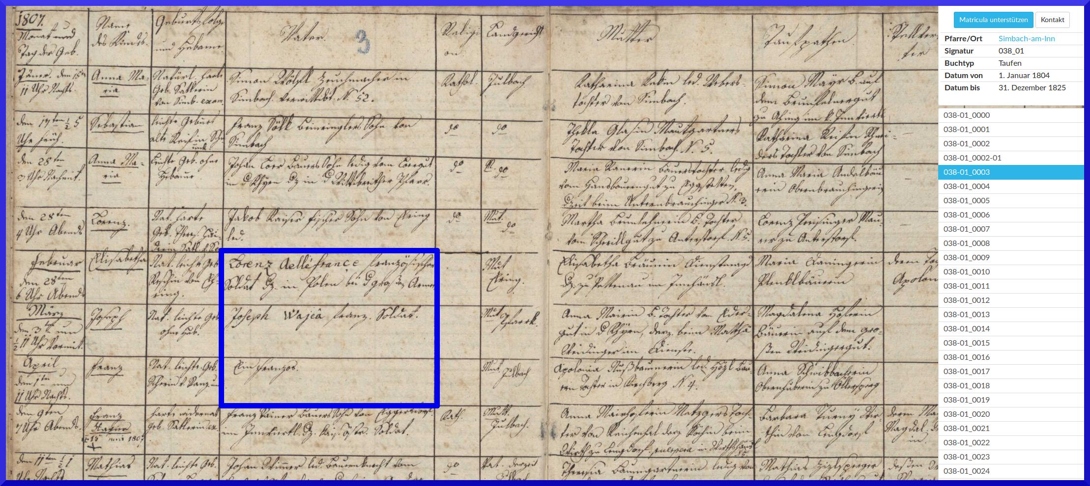 Apollonia kannte zudem nichtmal den Namen des Vaters. Der Vater des ersten Kindes ist als Lorenz Aelléfrance angegeben. Er sei ein "französischer Soldat, derzeit in Polen bei der großen Armee". Der Vorname wurde eingedeutscht, damit habe ich kein Problem. Aber der Nachname? "Allez France"? Das klingt nach einem falschen Namen. Sie haben ihn erwischt und er hat einen falschen Namen angegeben. Und sie haben den Namen nach Gehör geschrieben. Der Vater hat die Schreibweise nicht korrigiert. Ähnlich der zweite Vater: Joseph Wajeâ. Ich gebe gerne zu, dass ich mich im Französischen nicht auskenne. Aber eine kurze Internetrecherche läßt vermuten, dass dieser Name wenn nicht falsch, dann zumindest falsch geschrieben ist. Der Vater war längst über alle Berge.
