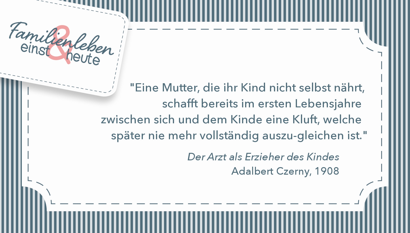 "Für ein Kind, das durch eine Amme oder durch eine Pflegerin ernährt wird, bleibt die Mutter eine fremde Person trotz aller Verwandtschaftsverhältnisse, und die Entfremdung des Kindes ist umso stärker, je seltener ein Kind seine Mutter zu sehen bekommt. Eine Mutter, die ihr Kind nicht selbst nährt, schafft bereits im ersten Lebensjahre zwischen sich und dem Kinde eine Kluft, welche später nie mehr vollständig auszugleichen ist."